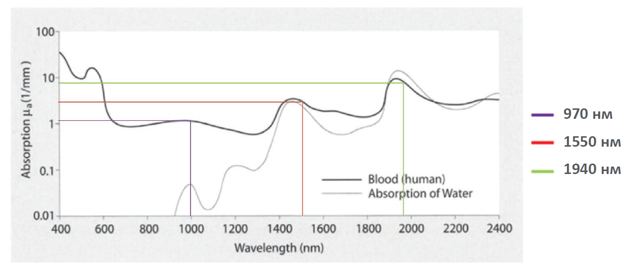Излучение с длиной волны 1,94 мкм имеет малую глубину поглощения тканями, что характеризуется менее выраженным термическим повреждением подлежащих и окружающих тканей при их рассечении.
